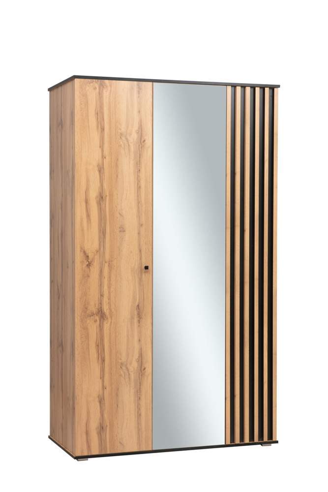 Распашной 3-х дверный шкаф для одежды 51.14 из серии Либерти укомплектован выдвижной штангой и полками. Центральная дверь оборудована зеркалом.Зеркало приклеивается к дверце в процессе сборки шкафа на двухсторонний скотч (самостоятельно/либо сборщиками мебели);