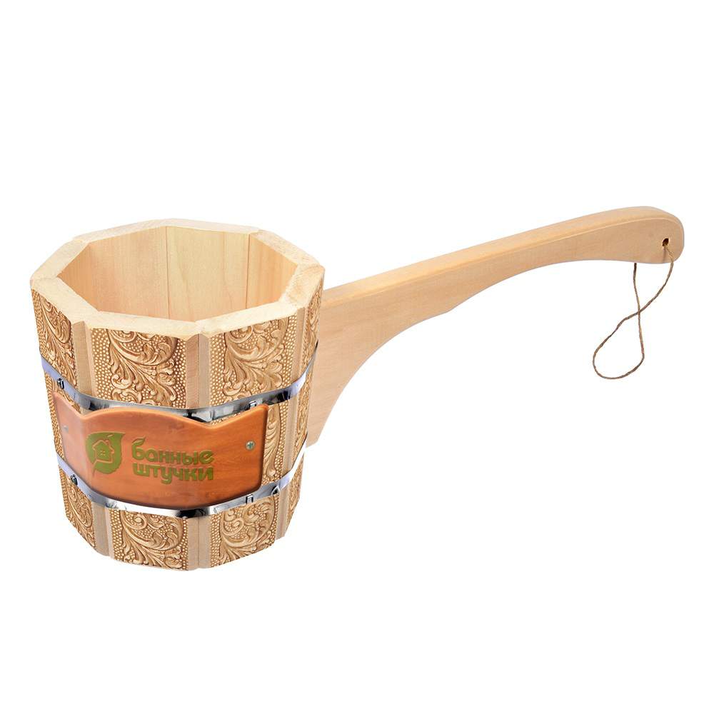 Ковш-черпак 1,5л бондарный с дл.руч. Цветы Банные штучки 33426