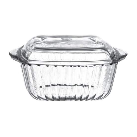 BORCAM Кастрюля 59049 2600мл прямоугольная рифленая со стеклянной крышкой 254х210х89мм