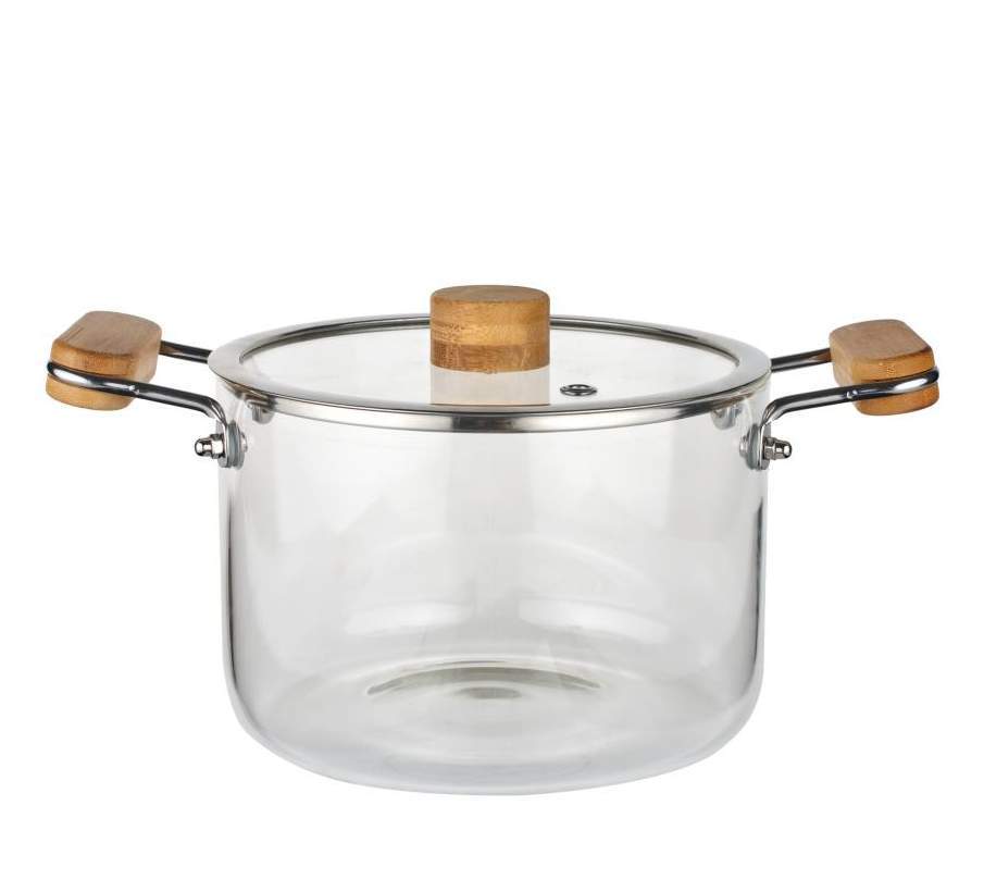 Посуда должна быть не только полезной, но и красивой!Кастрюля из стекла с крышкой - современное стильное решение для вашей кухни. Емкость выполнена из прозрачного жаропрочного стекла, а значит вы сможете наблюдать всю красоту процесса приготовления и следить за готовностью блюд.Ручки кастрюли выполнены из дерева и не нагреваются, что делает их удобными и комфортными. Стекло не влияет на вкус и аромат приготовленной пищи, не поглощает запахи и не выделяет вредных веществ при готовке.