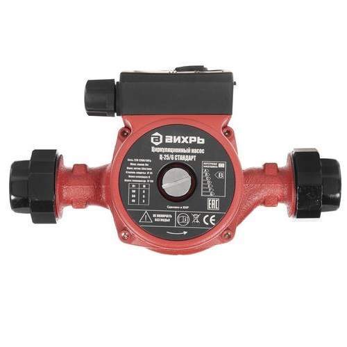 Циркуляционный насос ВИХРЬ ЦН-25-6 предназначен для обеспечения циркуляции воды в системах отопления, круговых трубопроводах горячего и холодного водоснабжения, центральных отопительных установках и системах перекачки промышленных вод (системах кондиционирования, охлаждения).Насос представляет собой компактное устройство с всасывающей и нагнетающей функциями. Вода перекачивается при помощи вращения рабочего колеса электродвигателем насоса.