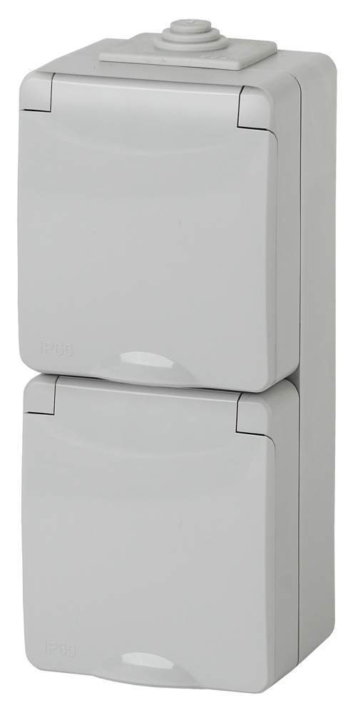 Розетка ЭРА 2x2P+Е верт.IP65 шторки 16А-250В ОУ 11-2608-03 серый