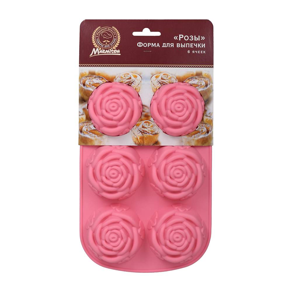 MARMITON Форма 16021 силикон Розы 6 ячеек 25,5*16,5*3 см