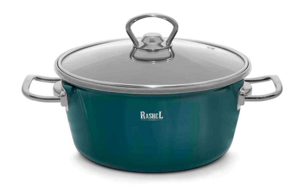 TM RASHEL Grand зеленый Кастрюля 4,5л 24см ручки(серебро) с/кр 3х-слойная эмаль R4024