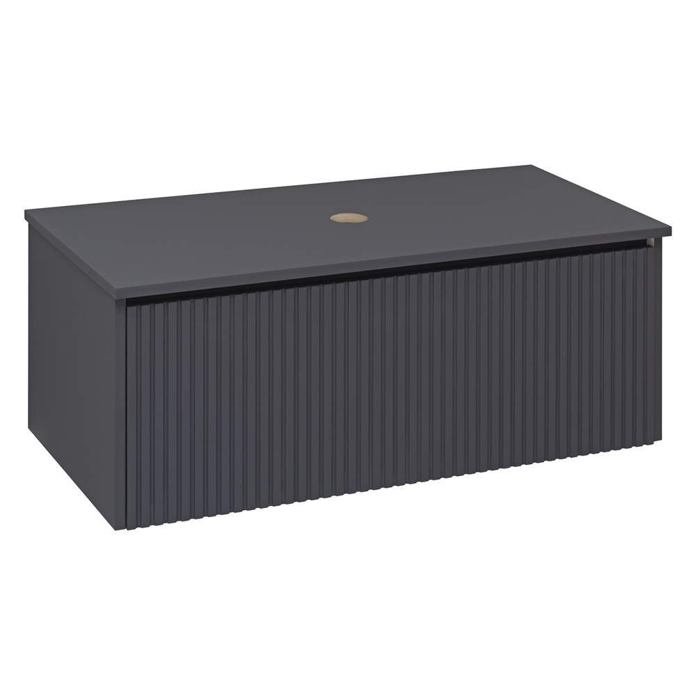 Фасад ящика на подвесной тумбе MONACO 90см /графит/ открывается с помощью механизма Push-to-open. Выдвижной ящик изготовлен из ЛДСП дуб Крафт белый (Кроношпан) толщиной 1см и оснащен направляющими скрытого монтажа, благодаря чему смотрится легко и стильно.