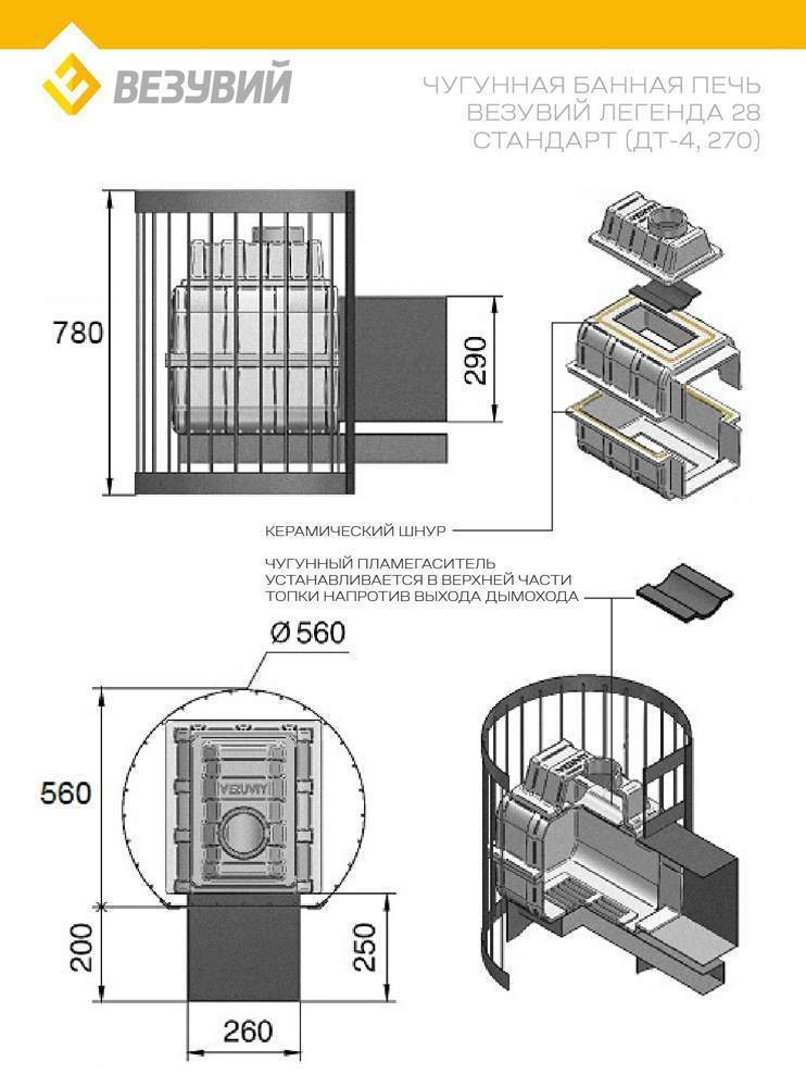 ➡️ Преимущество печи в том, что топка печи состоит из 3-х элементов. На стыке между ними используется керамический шнур с рабочей температурой 1200 градусов. То есть топка печи абсолютно герметична! Для фиксации деталей между собой применяется болтовое соединение, что даёт 100% гарантию безопасности при эксплуатации.Банная чугунная печь Легенда Стандарт 28 (ДТ-4) укомплектована чугунной не герметичной дверцей Везувий ДТ-4. Конвекционно-вентилируемый кожух "Стандарт" изготовлен из металлического прутка диаметром 6 мм покрашенной черной термостойкой краской.